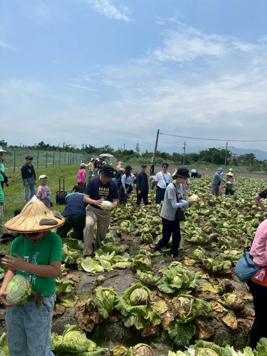 跟河川說bye bye之後,到高麗菜園變身小農夫,孩子們興奮採收高麗菜,這些高麗菜長相樸素,大家還是很願意去親近它們,剝開後發現鮮甜多汁,感謝大地的恩賜和農夫的辛勞!